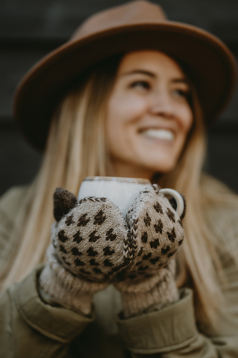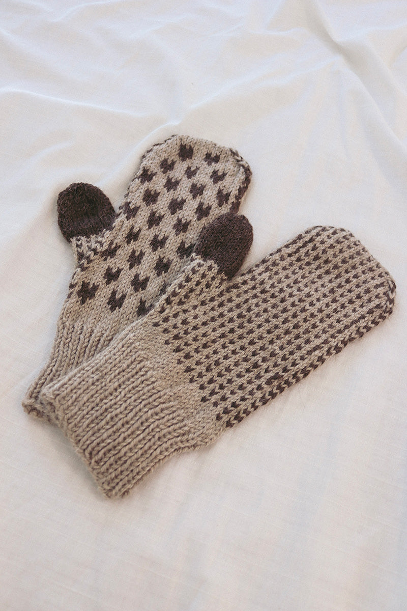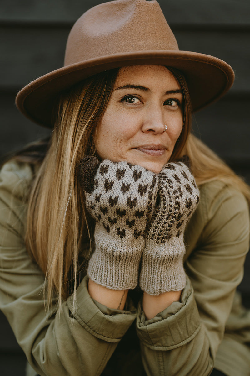 Matthew Schrank's Palm of Hearts Mitts showcases an adorable heart design using two colors of Yarn Citizen Harmony Worsted. These stranded mittens feature two heart motifs, one spanning multiple rows and the other a single stitch. The luxurious blend of Merino Wool and Alpaca in Harmony Worsted ensures a cozy feel against your skin, making it ideal for stranded knitting. Embrace the warmth and charm of these mittens as you craft a delightful accessory that will keep you cozy and stylish throughout the colder seasons!