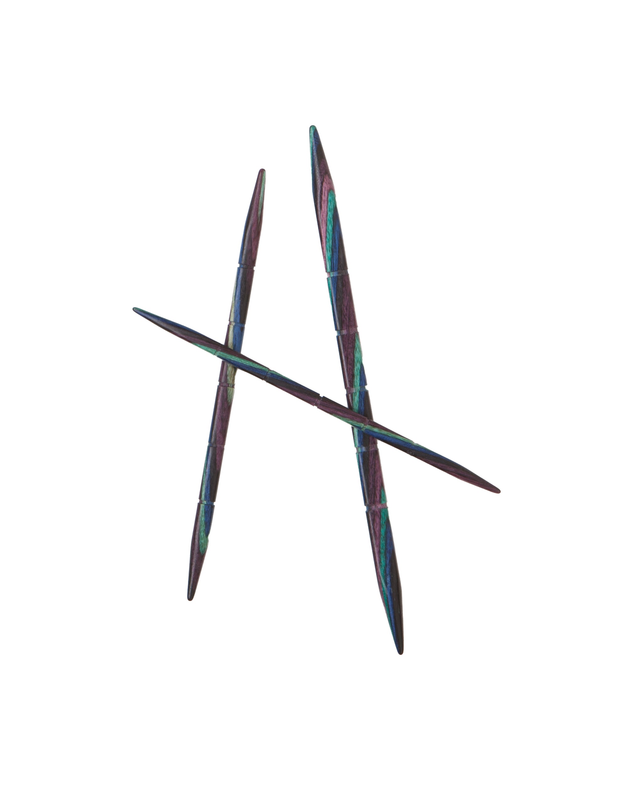 Boasting the usual strong and smooth layers of laminated birch, these Foursquare needles show off the deep purples, greens, and blues of our Majestic needle colorway, with sharp, gradually tapered points that slip easily into stitches so even complicated cables and decreases are easy to maneuver.