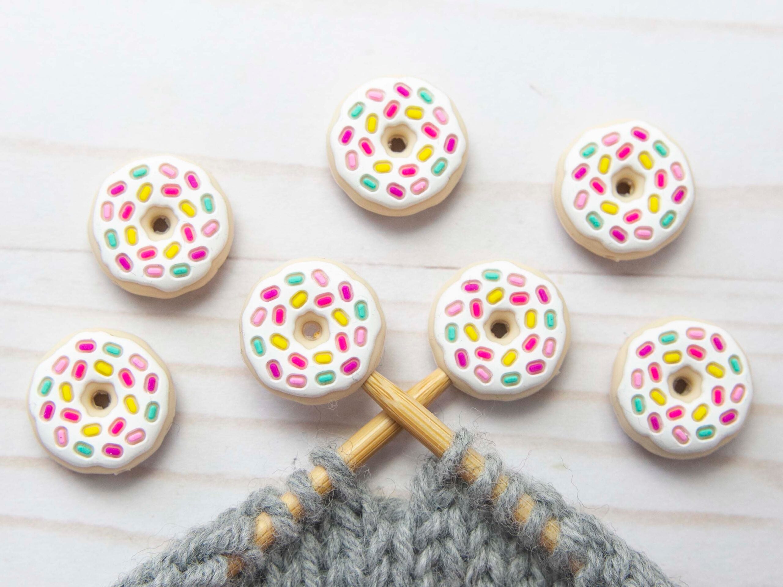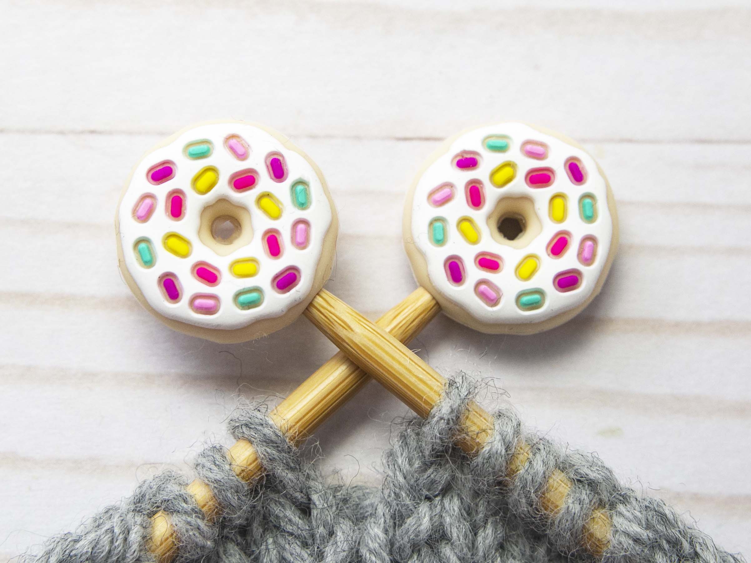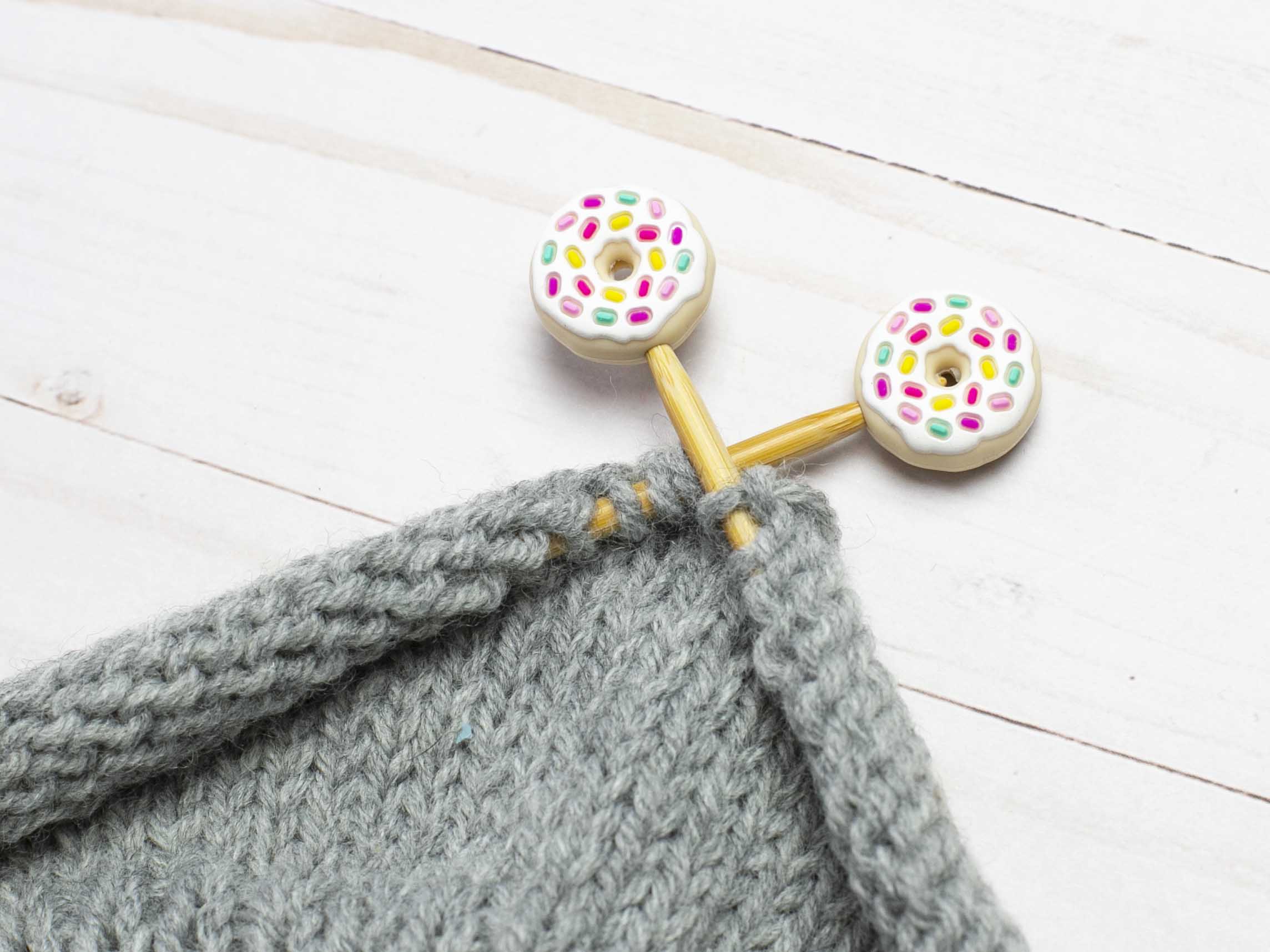 These adorable stitch stoppers are a knitter's new best friend! Pop the pair of them on the end of your needles to keep your stitches safe when you set your project down. You'll wonder how you ever managed without them. They fit snugly and won't budge until you're ready to take them off. A must-have for every knitting bag!