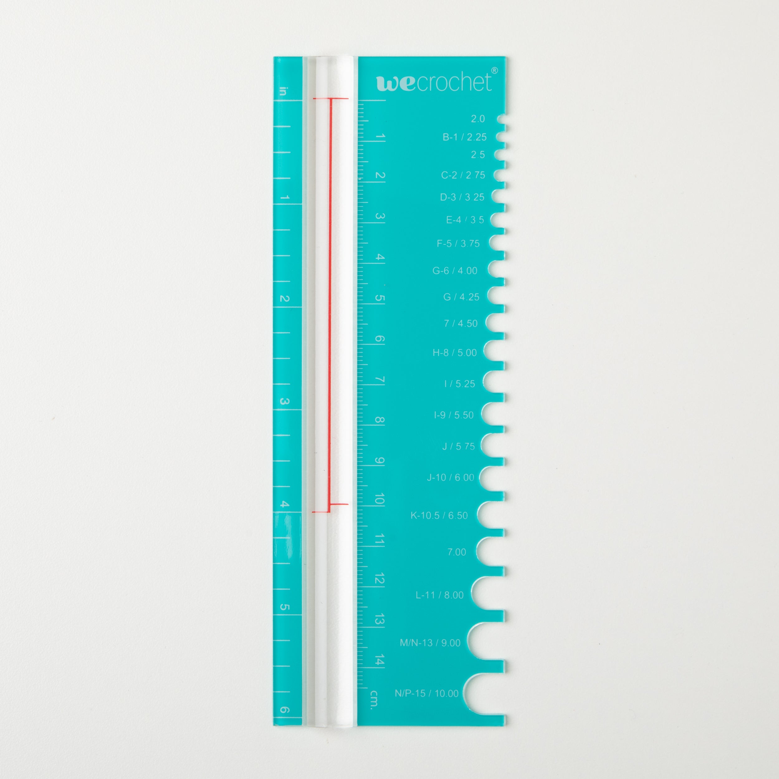 Check your hook size, check your gauge, and measure your stitches or rows all with this handy tool.