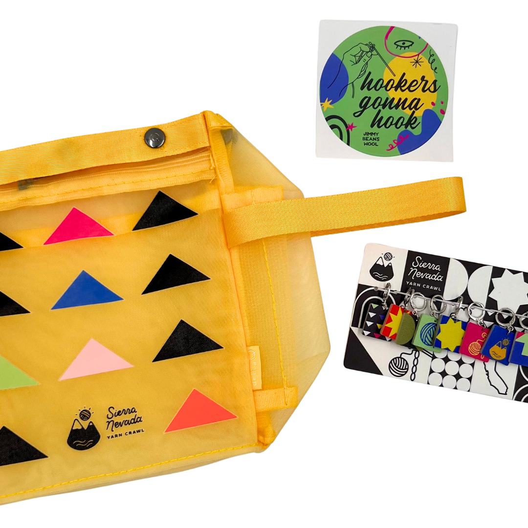 Show off your crochet pride with our “Hookers Gonna Hook” Sticker! Made just for the Sierra Nevada Yarn Crawl, this colorful sticker celebrates every maker who loves their trusty hook. Perfect for project bags or your yarn journal, it’s a playful reminder that crocheters always stitch in style!