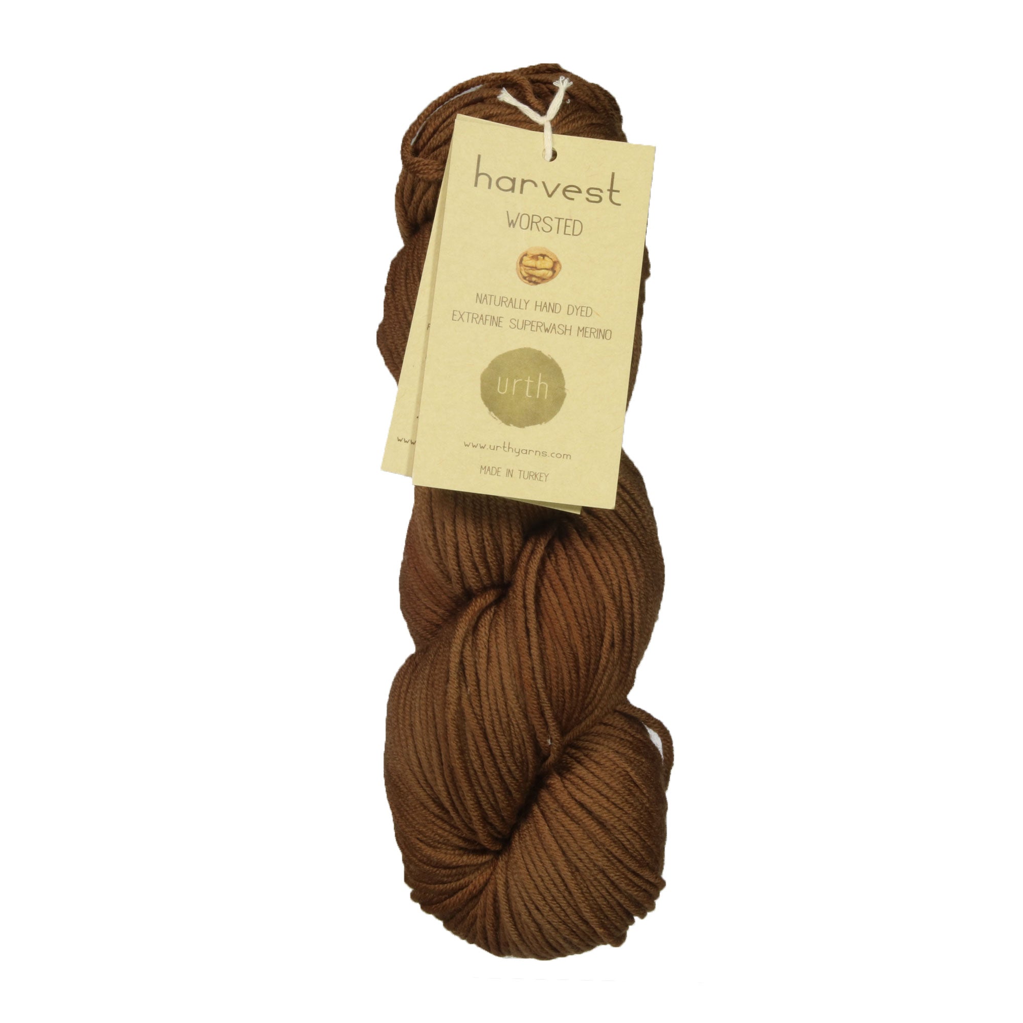 Urth Yarn's Harvest Worsted takes Urth Yarn's super squishy, extra-fine merino base and dyes it with natural ingredients such as roots, fruits, and nuts. The stunning result is this collection of extra... Urth-y earth tones that are sure to delight knitters and crocheters everywhere. This worsted-weight yarn is great for all projects ranging from cardigans to shawls and everything in-between!