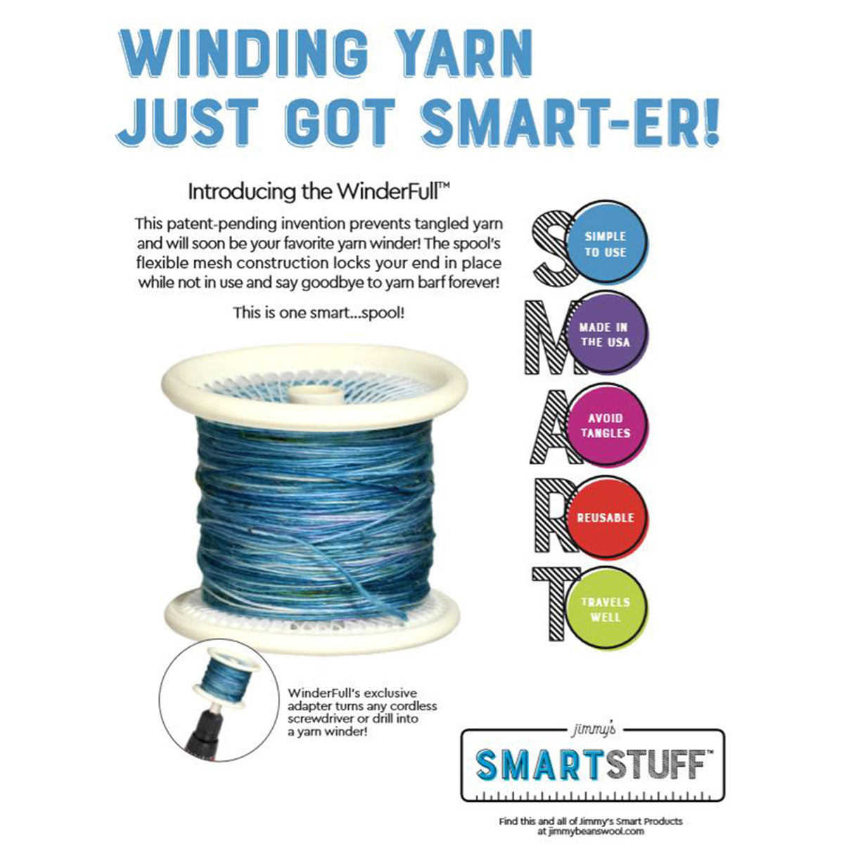 Your yarn can be wound with ease with the WinderFull, making your next knitting or crocheting session that much easier! Forget about tangles and yarn barf - seriously! The WinderFull winds the yarn directly from the skein and protects the yarn from dirt and debris. The best part? You won't need to buy expensive ball winders! Use any household power drill or screwdriver and your swift, then push the power button and let the WinderFull do the rest!