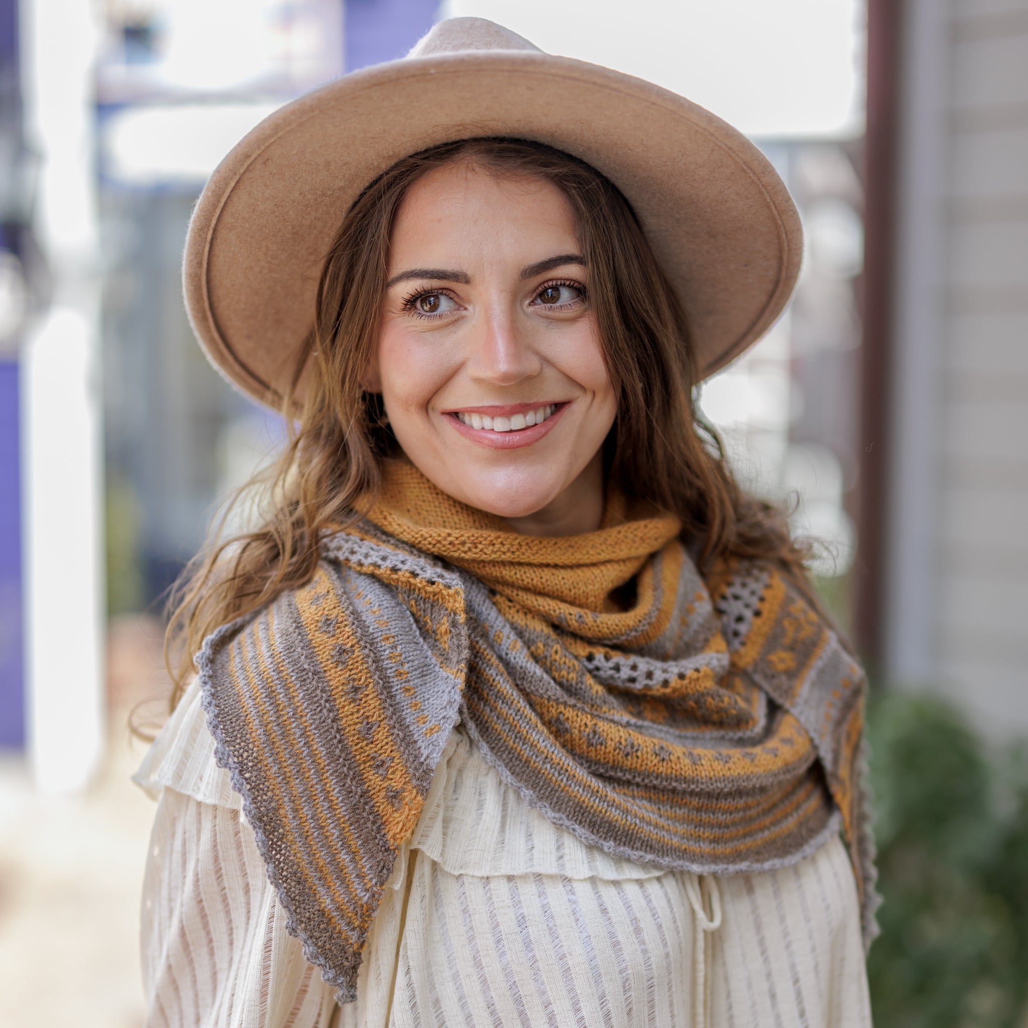The Brittlebrush Shawl is all about bold beauty and effortless charm! Knit with three colors of Yarn Citizen Harmony Fingering, this stunning colorwork design blends rich hues and intricate patterns into a piece that feels just as good as it looks. Whether you're wrapping up for a chilly morning or adding a pop of color to your outfit, this shawl is sure to be a favorite in your handmade wardrobe!