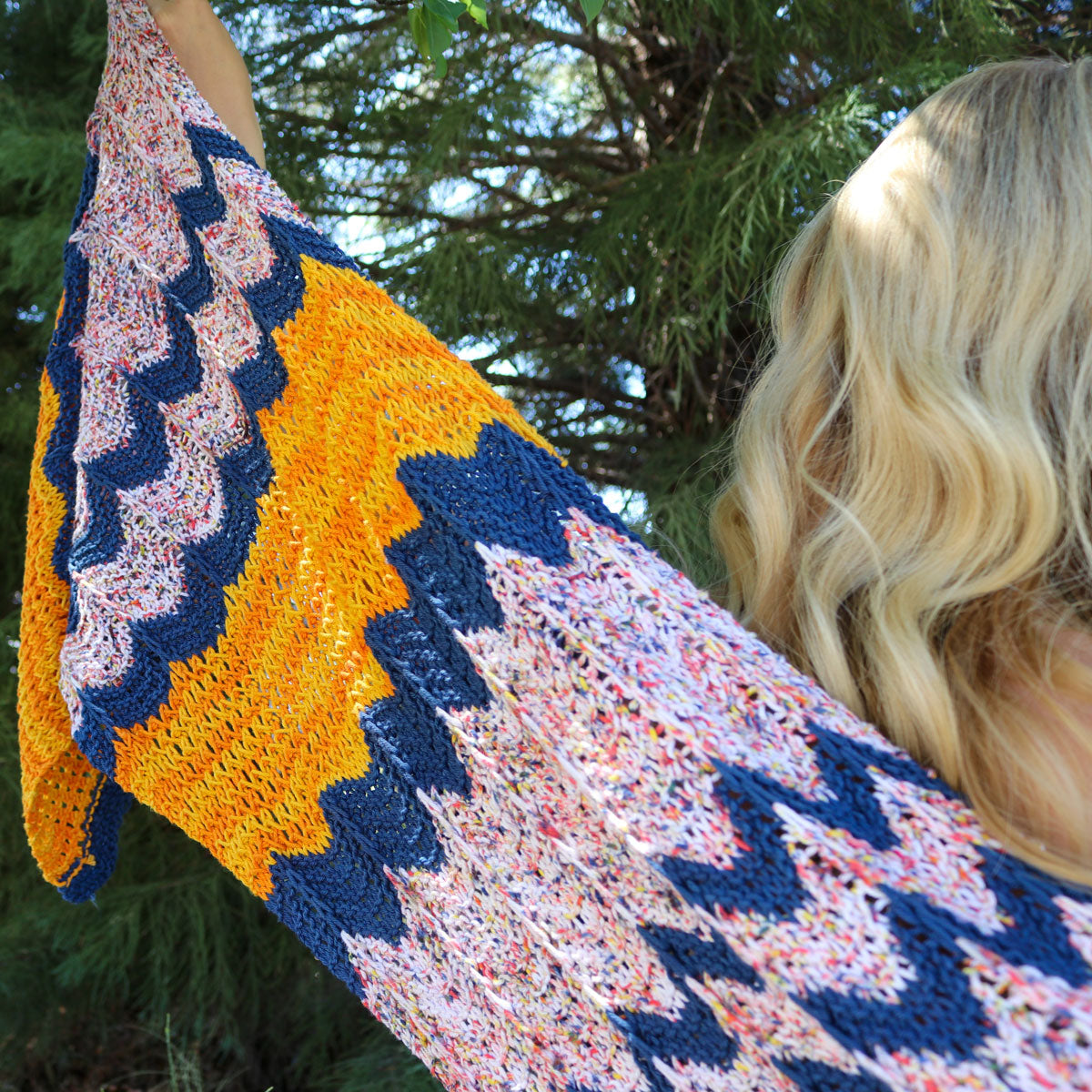 Laura Cunitz designed this beautiful shawl last summer to celebrate the season with yummy colors and chic chevrons! Using 4 skeins of Malabrigo Verano, the pops of bright orange left us drooling (and now we're craving popsicles)! In order to really bring some joy to our summer knitting, this pattern is free on our site for everyone to enjoy! This design is perfect for any level of knitter, resulting in a long, eye-catching project to wow your friends with this season!