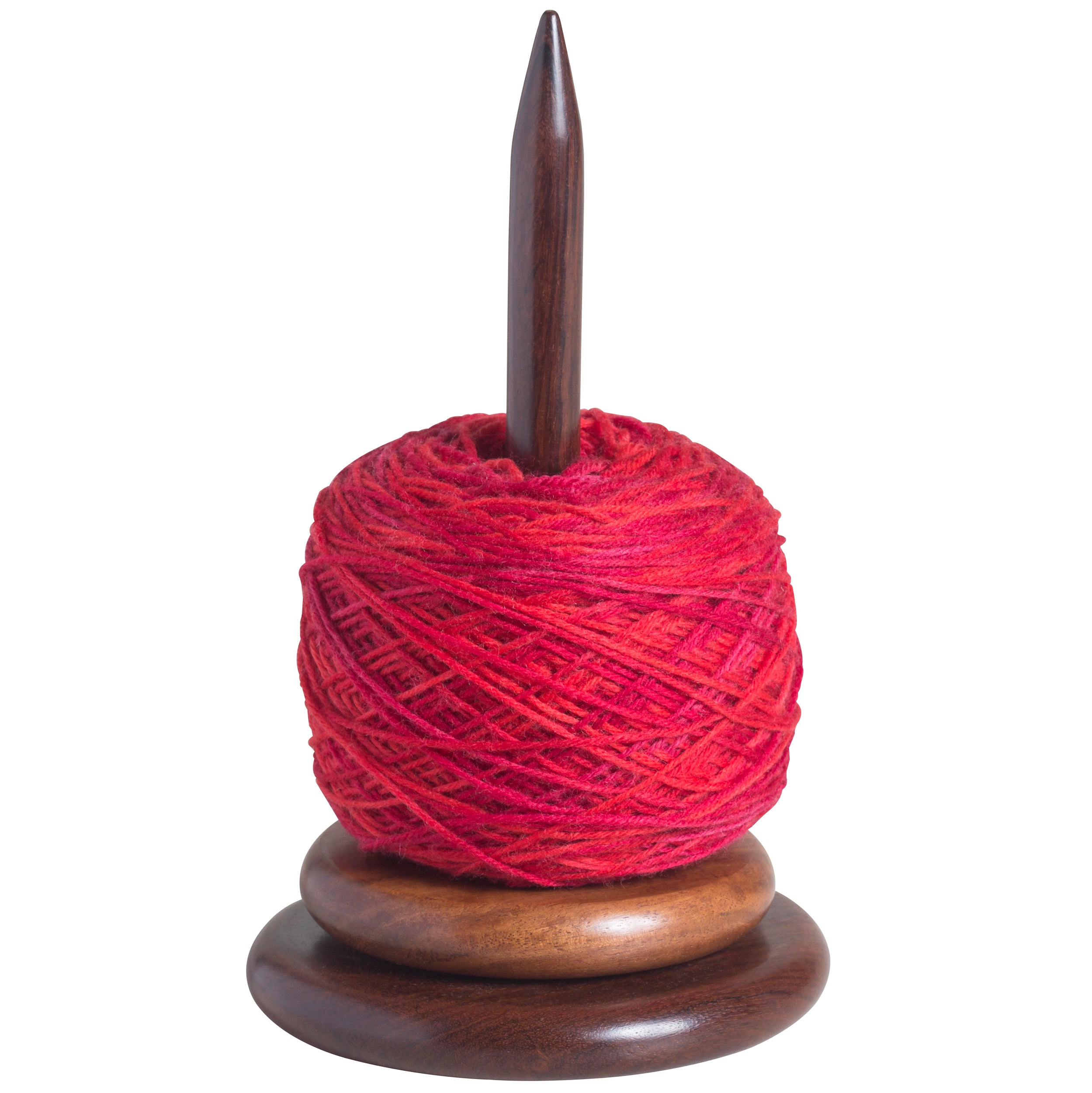 Keep your yarn clean and tidy with this solid wood spindle. Made of Acacia hardwood, your yarn cakes will fit snugly on the spike as the Lazy Susan base keeps your fibers flowing smoothly. Holds two 100gm cakes stacked with ease.