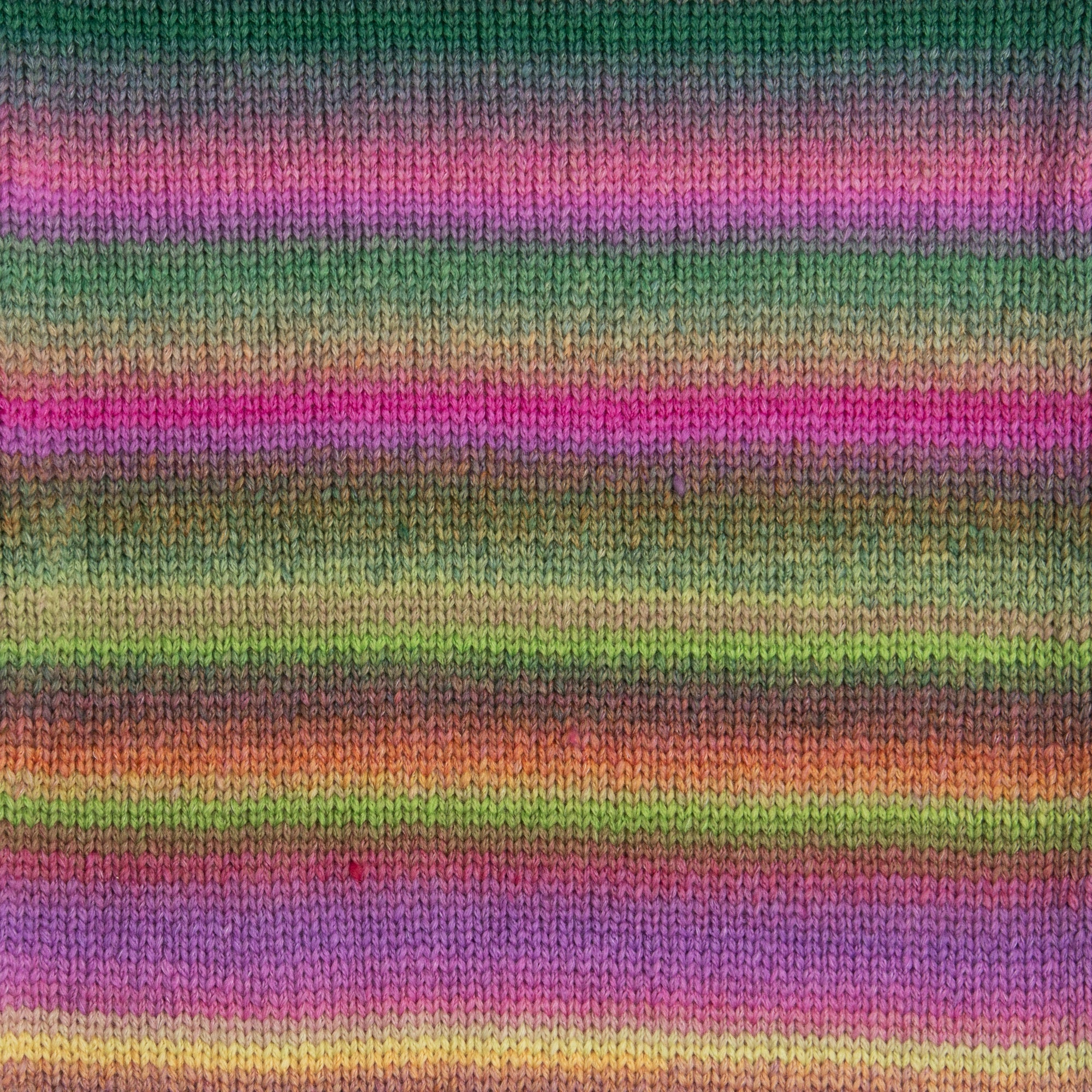 There is magic in Berroco Wizard because even though the strands of this yarn are chunky, they feel weightless! The chainette construction of this 85% Superwash Extrafine Merino Wool is the secret behind this yarn's wizardry. With strikingly bold colors painted throughout, this self-striping yarn will bring a mystical lift to your accessories and sweaters! Each bulky-weight ball carries 262 yards, ready to spellbind your next project!