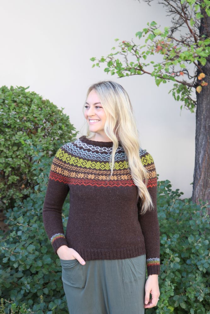 We recently had a Blue Sky Fiber Trunk Show in our store and we fell in love with the Woolstok Light projects! The Terrace Gardens Sweater is a top-down sweater featuring a colorwork yoke and cuff accents! Pick your favorite color combos of Woolstok Light to create a gradient or go for a high contrast look.