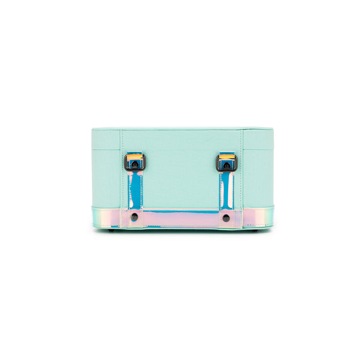 Designed for makers who love to roam, this reimagined Train Case from the GLOW Collection pairs unwaxed canvas with shimmering iridescent vinyl and sleek gunmetal hardware for a fresh, modern edge.