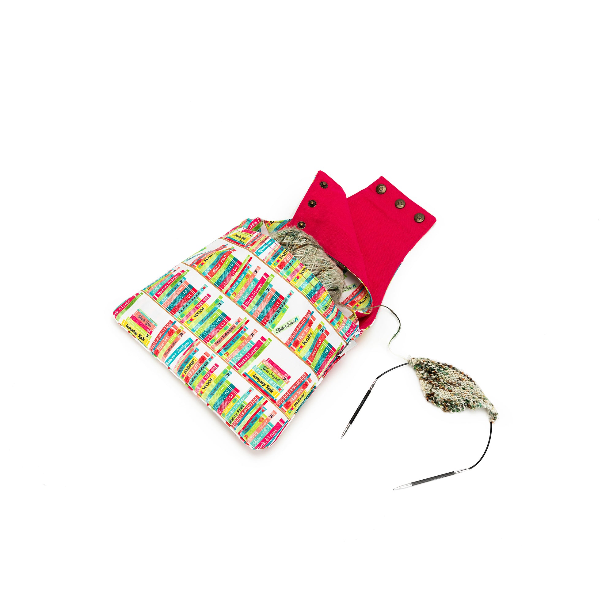 The della Q Nora Wrist Bag is a lightweight and compact wristlet perfect for crafting on the go! This bag slips easily over your wrist, allowing you to knit out of its main pocket, and it can hold a small or medium-sized project! Available in both prints and solids, there is sure to be something for everyone! Use this bag on the go or simply as a yarn bowl for your next knit or crochet project!