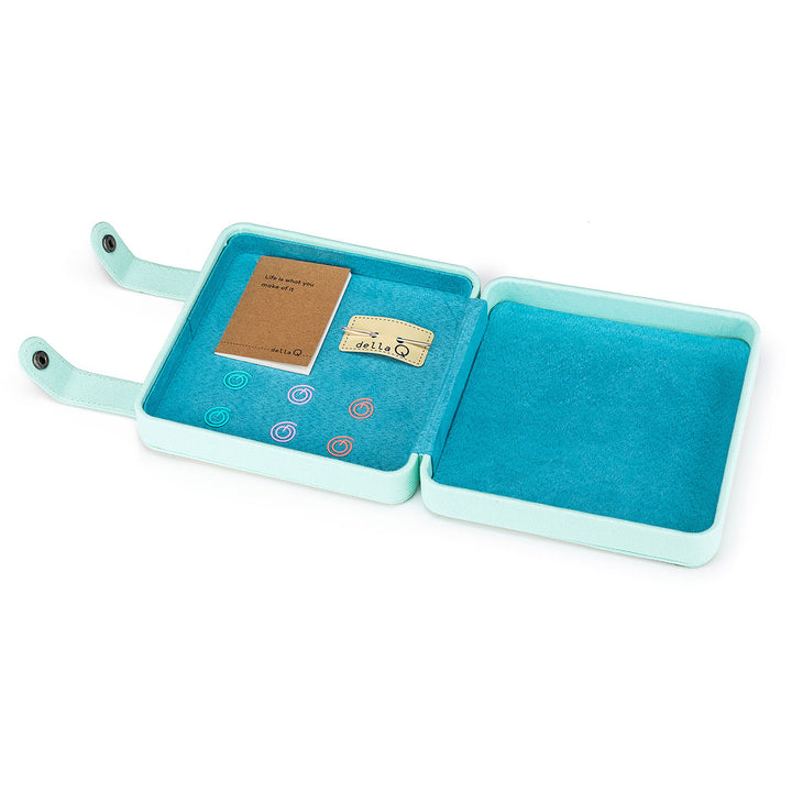 Everything is elegantly packaged in a kraft gift box, making it the perfect present for yourself or a fellow maker. With its shimmering iridescent vinyl and functional design, the della Q Hook Stitch Case is as beautiful as it is practical-an accessory you'll want to take with you wherever you crochet!
