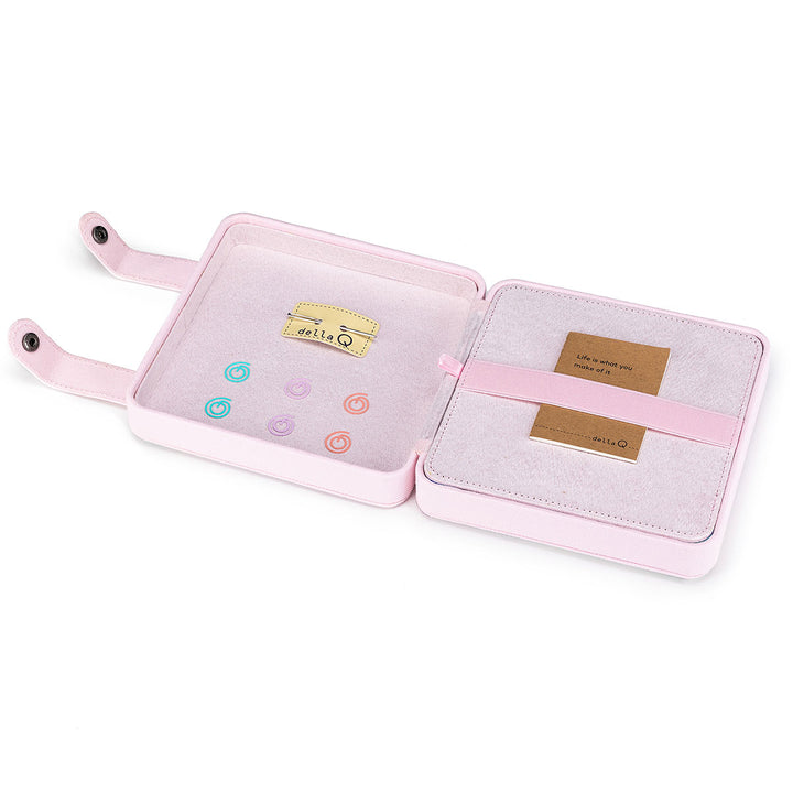 Everything is elegantly packaged in a kraft gift box, making it the perfect present for yourself or a fellow maker. With its shimmering iridescent vinyl and functional design, the della Q Hook Stitch Case is as beautiful as it is practical-an accessory you'll want to take with you wherever you crochet!