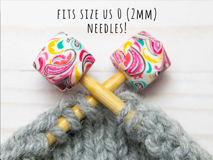These adorable stitch stoppers are a knitter's new best friend! Pop the pair of them on the end of your needles to keep your stitches safe when you set your project down. You'll wonder how you ever managed without them. They fit snugly and won't budge until you're ready to take them off. A must-have for every knitting bag!