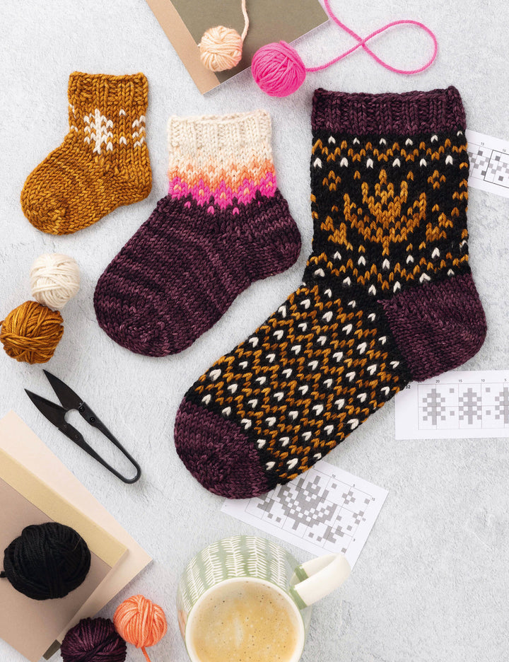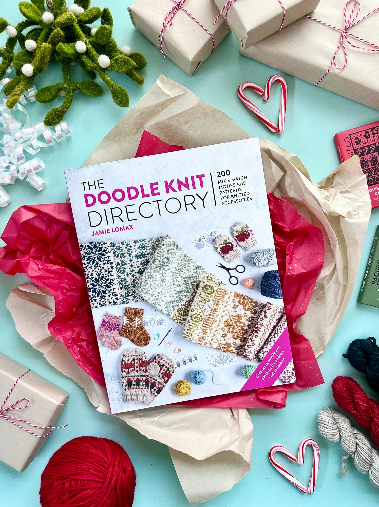 The Doodle Knit Directory by Jamie Lomax is your ultimate guide to colorwork play! With 200 mix-and-match charts, you can “doodle” your way through hats, mittens, scarves, and cowls—choosing motifs, repeating favorites, and experimenting with endless combinations. From flowers and leaves to sheep, squirrels, and abstract designs, every chart shares the same stitch count so you can mix them seamlessly.