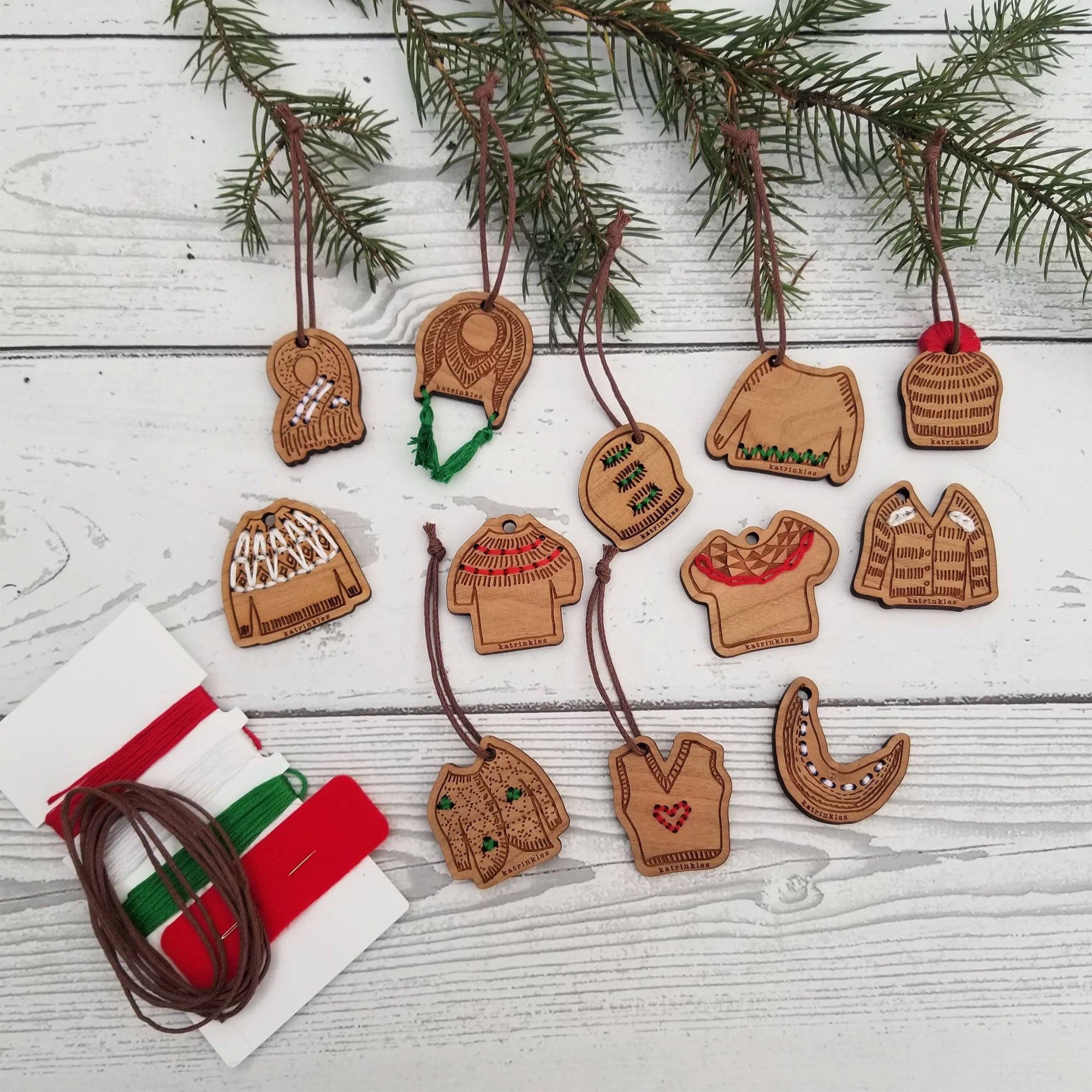 Countdown the holidays in true crafter style with this festive set of 12 stitchable wooden ornaments! The kit includes 12 laser-etched wooden ornaments in a variety of cozy hand knits, colored thread, a needle and a length of cord for hanging, all lovingly tucked into a charming stamped muslin bag. Whether you hang these ornaments on your tree, string them along a garland, or attach them to a gift, these are sure to bring some excitement and cheer to the season!
