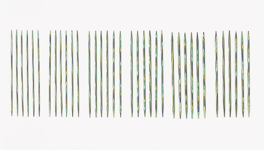 The 5" wood double pointed needle set makes the perfect gift for the sock and mitten knitter who favors wood needles. We have assembled the six most common knitting sizes and packaged them in this portable, flexible, 5.875" by 6.375" vinyl case with snap shut closure. Each size is neatly labeled on the enclosed packaging so you can see the sizes at a quick glance. Watch the metric sizes - they are more finely tuned than the US sizes.