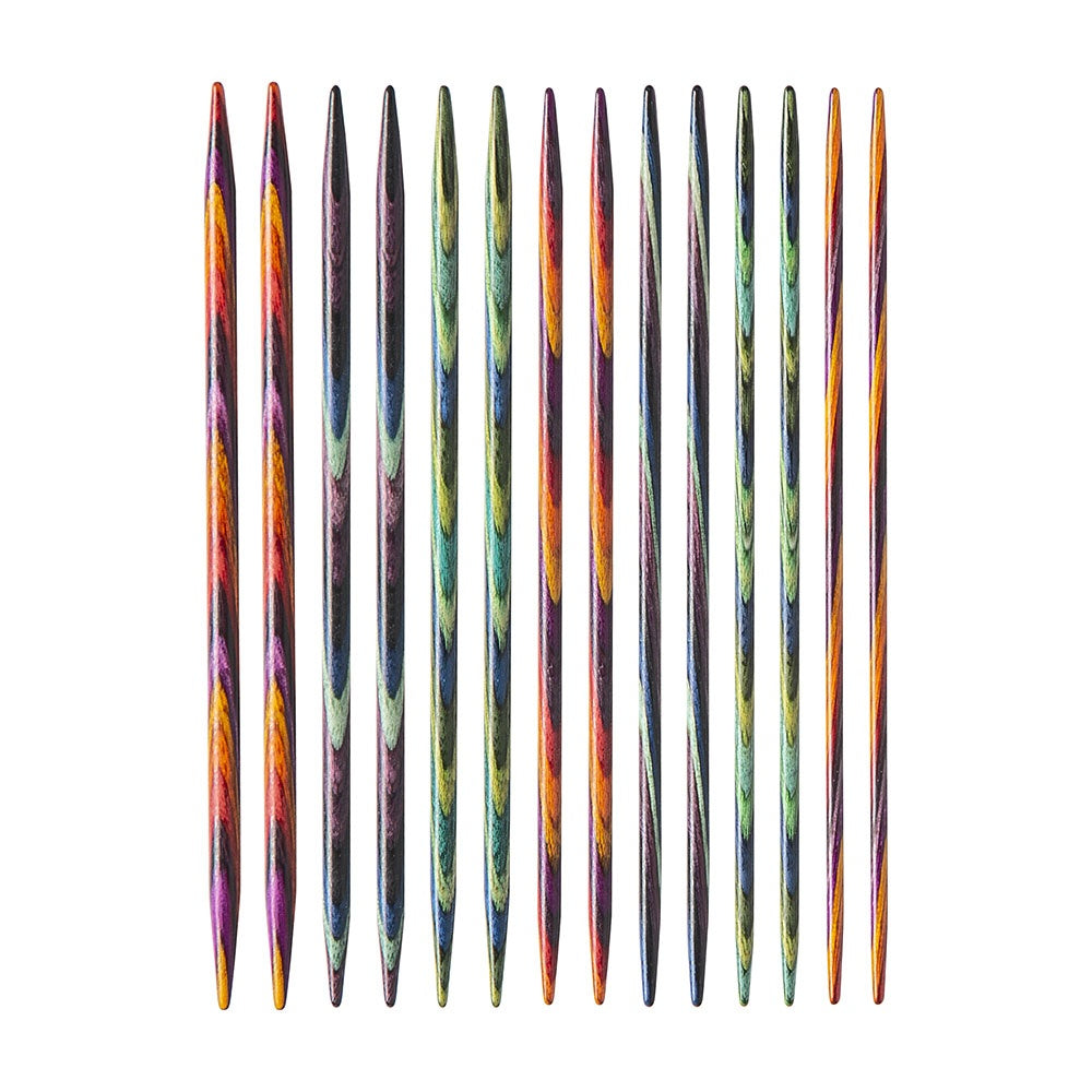Included are the seven most common sock knitting sizes, packaged in a portable, flexible, 5.75" by 9" vinyl case with snap shut closure, making it the perfect gift for sock knitters who favors wood needles. Each size is neatly labeled on the enclosed packaging so you can see the sizes at a quick glance. Watch the metric sizes - they are more finely tuned than the US sizes.