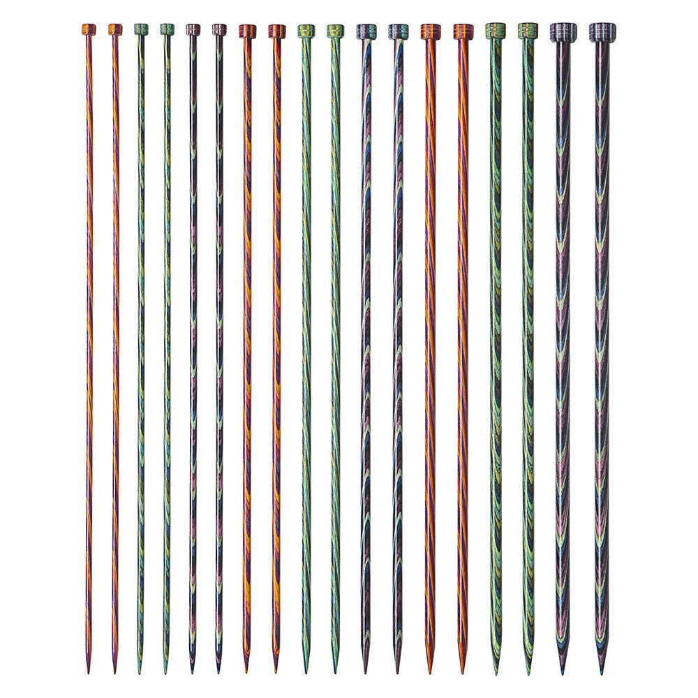 Now there's no need to choose between our most popular wooden needle colors with the Mosaic Straight Knitting Needle Set. Combining Radiant's bright, bold, and warm boisterousness, the sea-inspired colors of Caspian's oceanic hues, and the luxurious jewel tones of dignified Majestic, Mosaic gives you the usual strong and smooth layers of laminated birch in every color you could want. And the distinct sequence of colors will make finding the right needle size easier than ever!