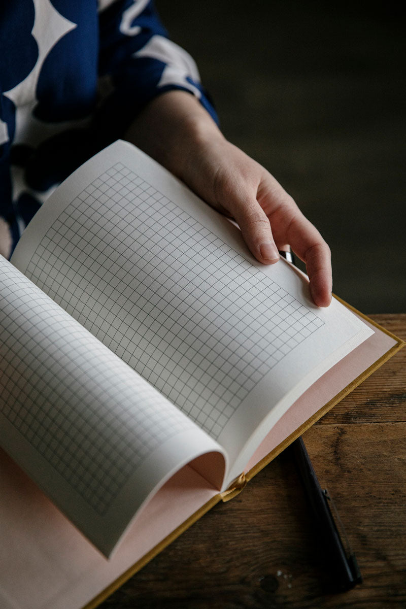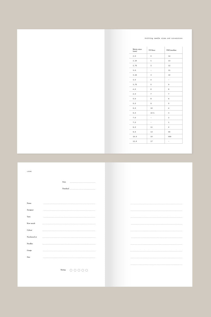 Laine's popular project notebook is here in a gorgeous terracotta color! The notebook includes space for 31 knitting projects (each project gets their own 4 pages), 6 pages for keeping track of your yarn purchases, 18 gridded pages for charts or colourwork sketches, a knitting needle sizes and conversions table, the most common industry related abbreviations, 156 uncoated, high-quality pages (+ 4 cover pages), a Woven book cover, and a beautiful ribbon place marker!