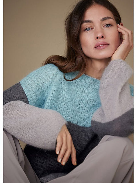 Lana Grossa Lookbook 15 Patterns - 18 Block Stripe Pullover- PDF Download