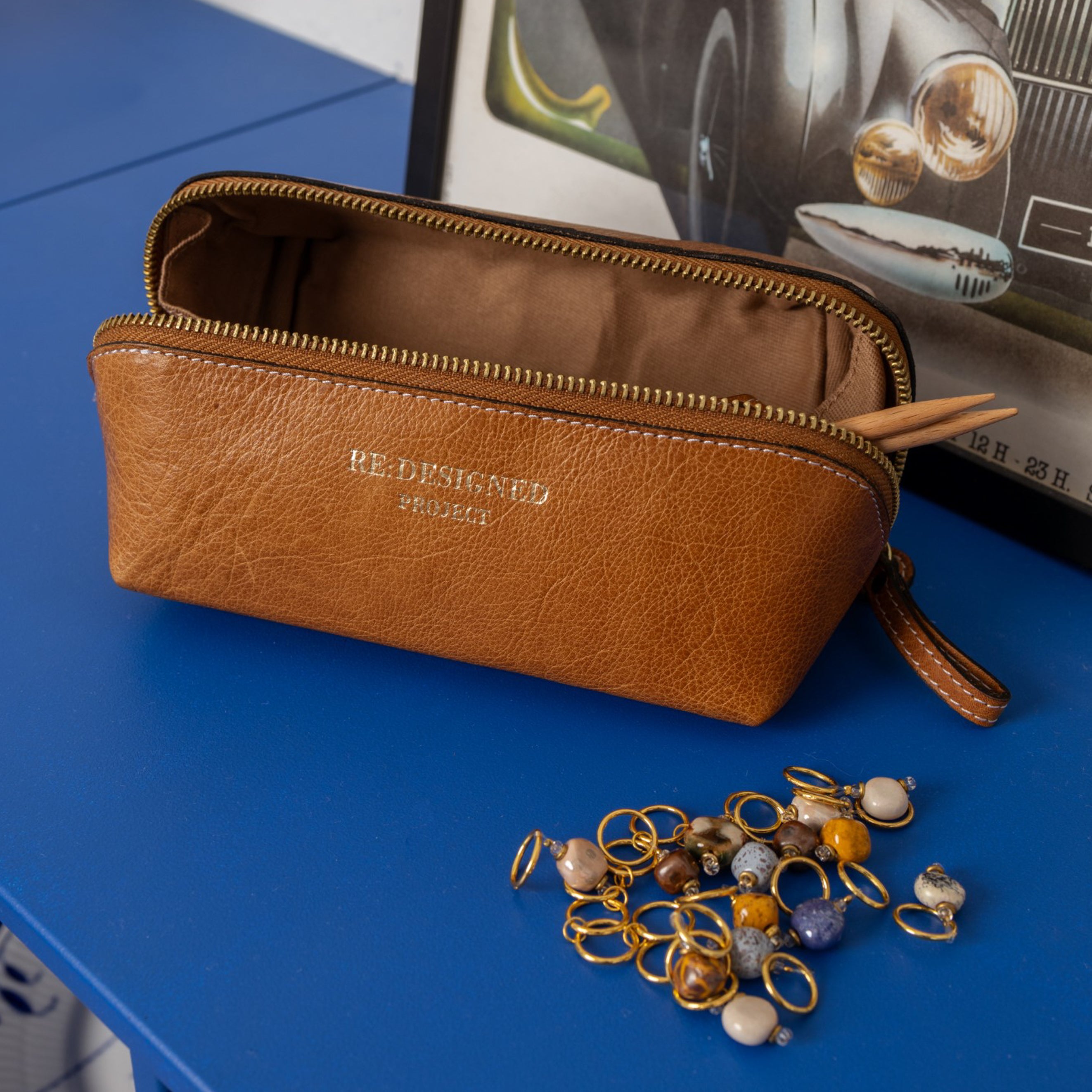 Project 36 is the pint-sized powerhouse your craft bag has been waiting for! A mini take on the iconic Project 10, this sleek leather case is perfect for 15 cm DPNs, crochet hooks, and all those tiny must-haves. The zippered center pocket keeps everything neatly organized, so no more digging for stitch markers at the bottom of your bag! Made from buttery-soft Urban leather, each case is dyed for rich color while preserving the natural grain, then finished with a light wax for that oh-so-smooth feel. Small but mighty—just the way we like it!