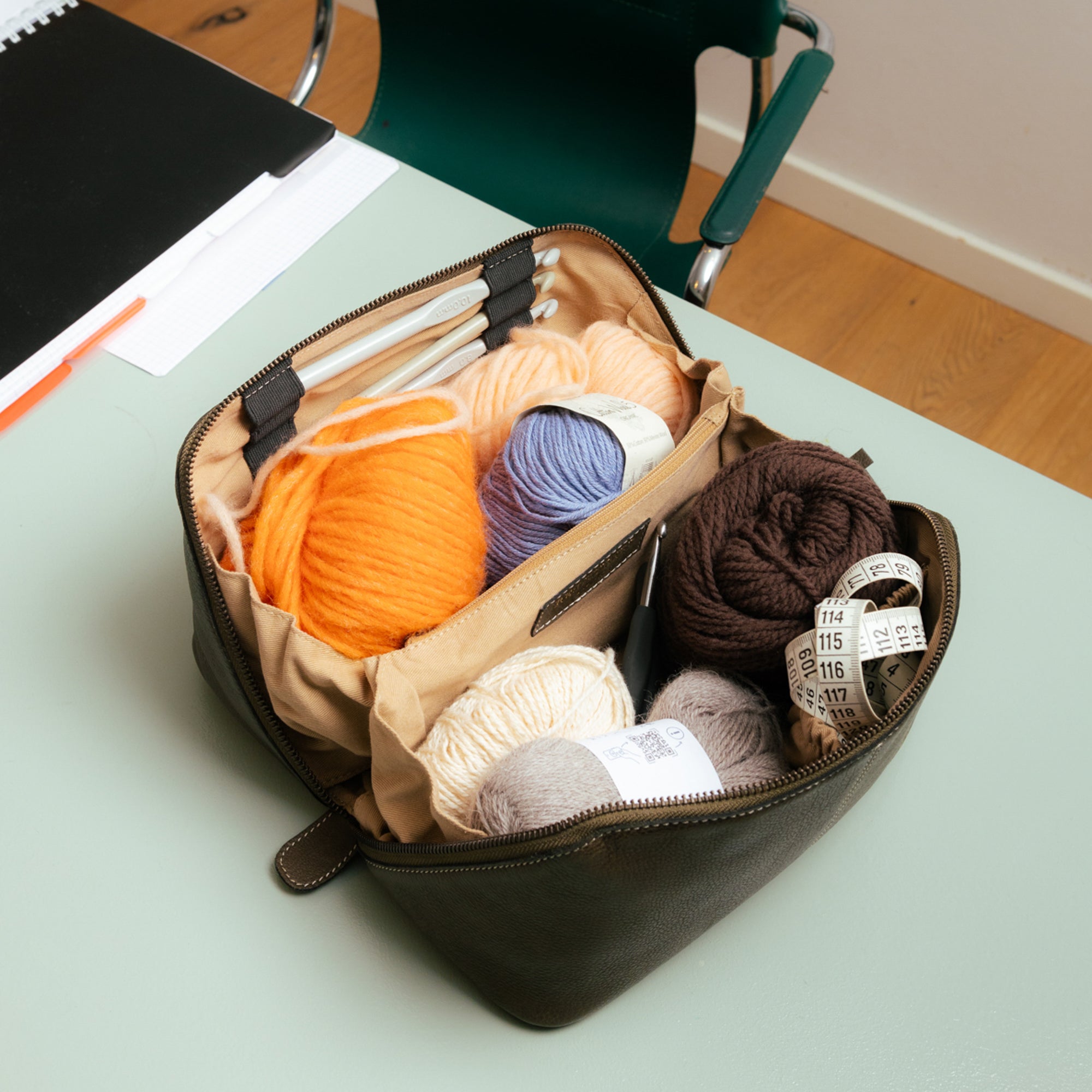 Project 9 is a marvel of design that blends form with function, creating the ultimate beauty box for yarn enthusiasts and knitting pros. With its meticulous craftsmanship, this stylish and multifunctional bag promises to enhance your crafting journey, allowing you to focus more on creativity and less on clutter! Designed with the artisan crafter in mind, Project 9 boasts a dedicated compartment for your tools, ensuring your scissors, stitch markers, and needles are always at hand, organized, and secure. Thanks to Re:Designed's ingeniously crafted pockets and loops, misplaced needles and hooks are no longer a thing!