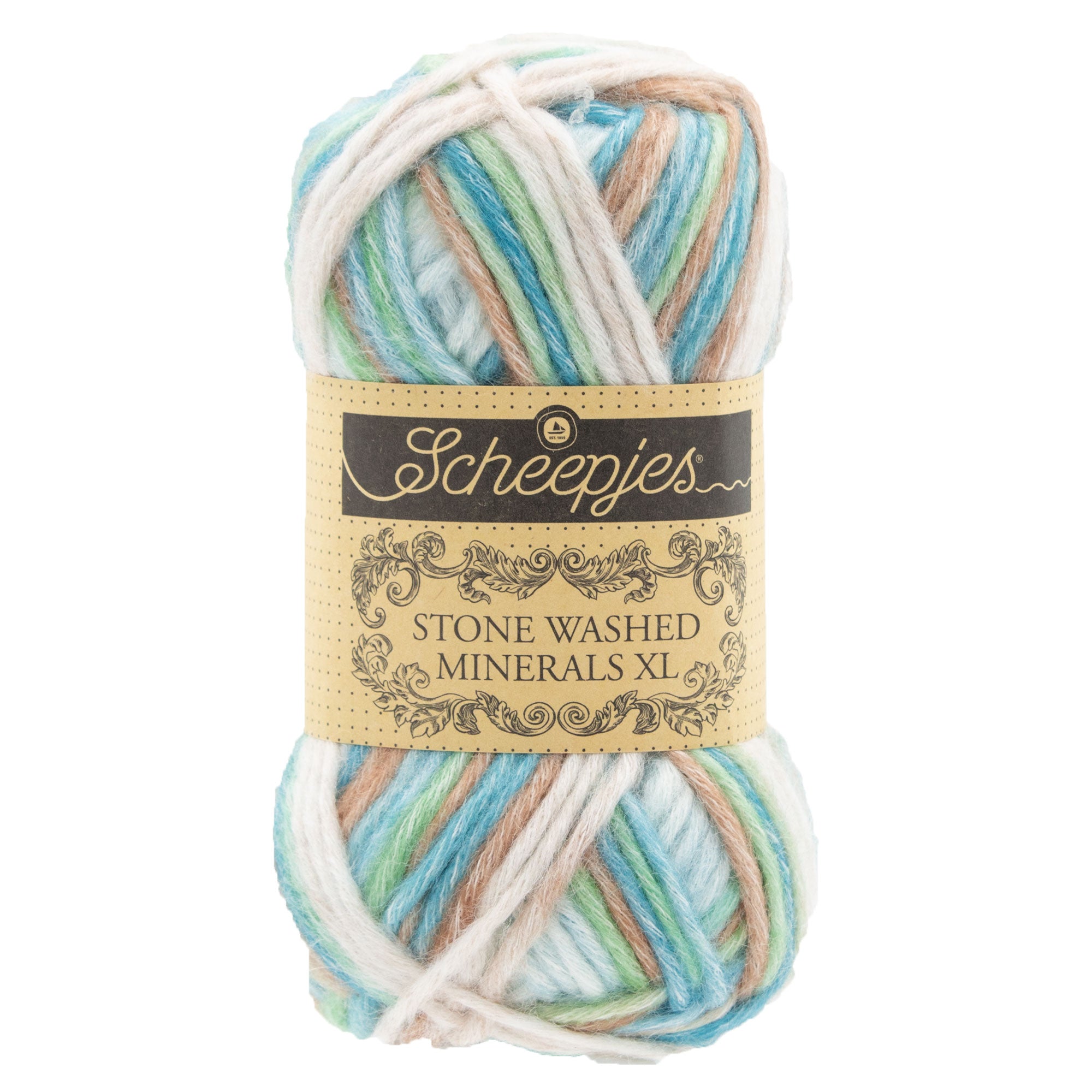 Introducing Stone Washed Minerals XL yarn, a vibrant addition to Scheepjes Stone Washed XL collection! Crafted from natural cotton and acrylic blend, this variegated yarn boasts multiple contrasting colors, perfect for adding depth to your projects. With stunning colorways, it's ideal for crafting blankets, garments, and accessories. Plus, it's gentle on sensitive skin.