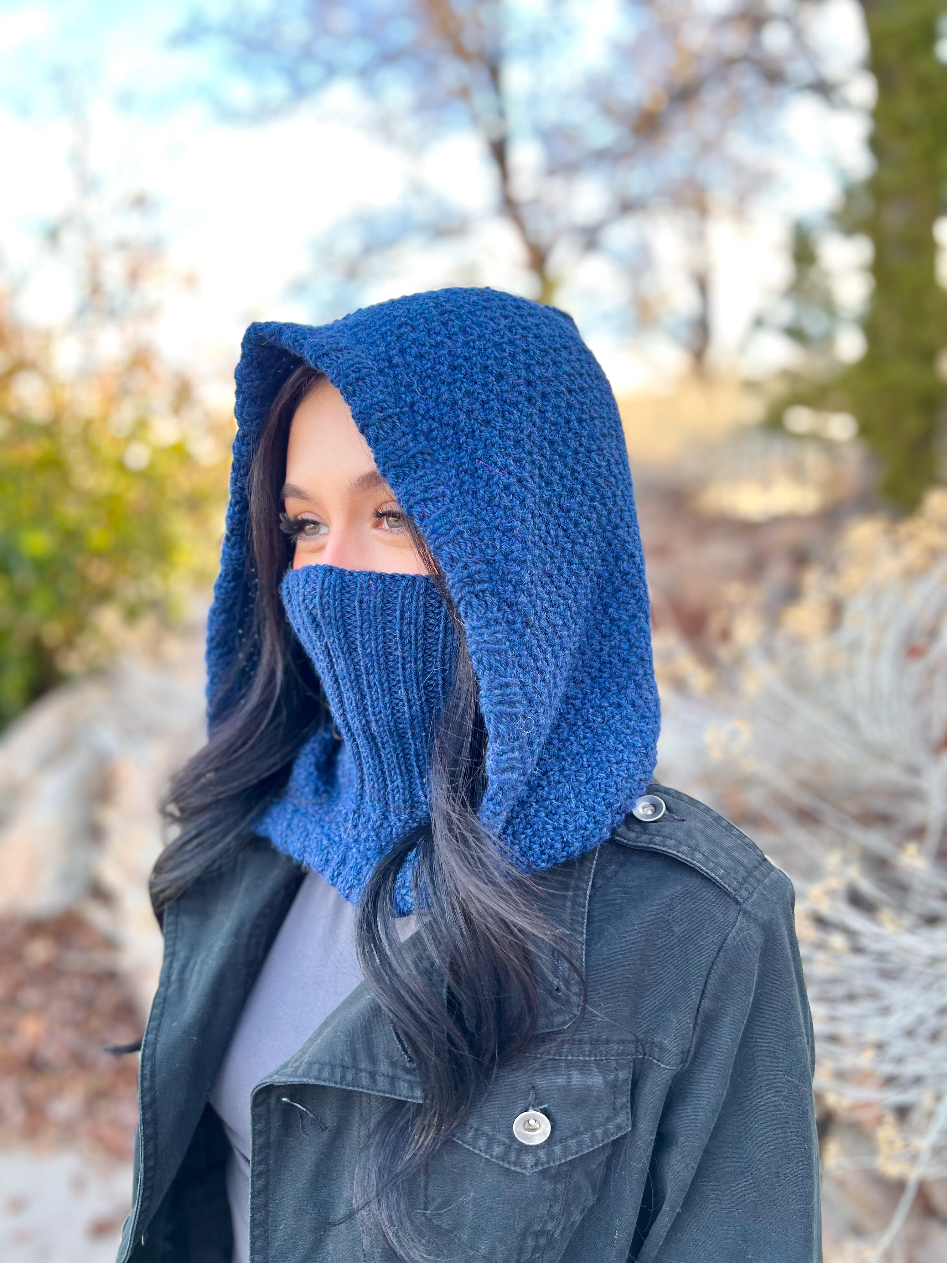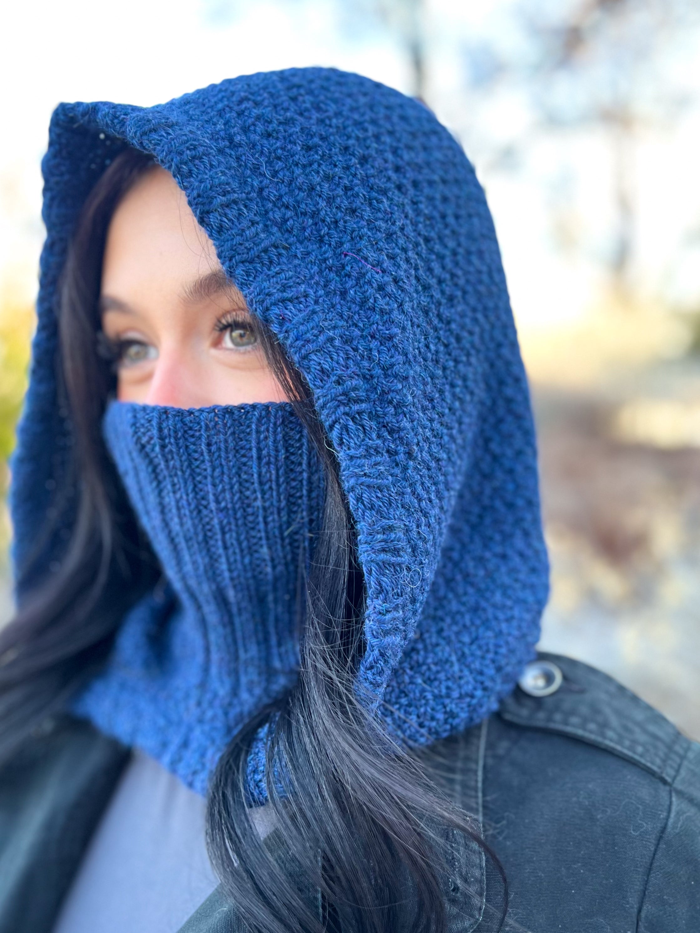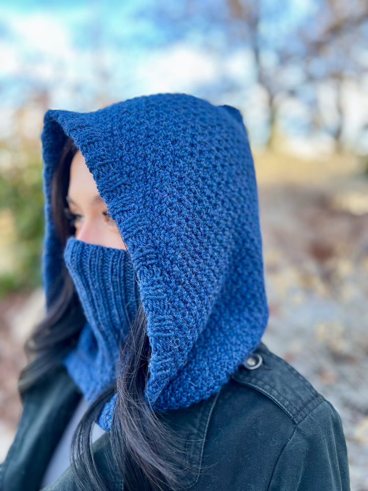Stay warm while enjoying nature with the Yarn Citizen Bird Watching Hood Kit. The ribbing can be worn down around the neck or pulled up to cover the face, offering cozy versatility.