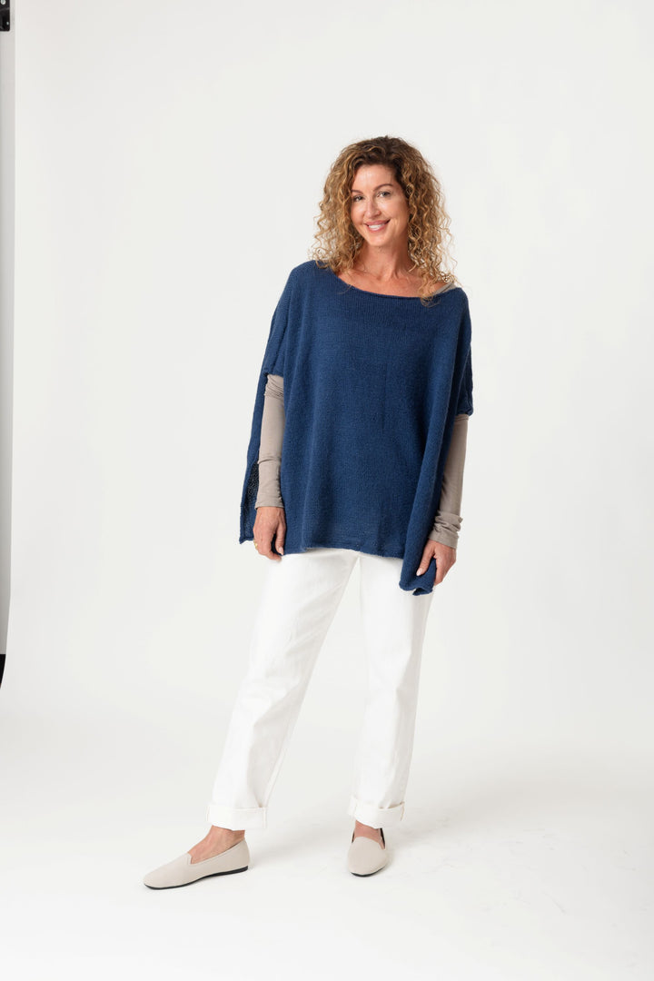 Meet your new favorite layering piece! By The Fire Poncho is knit flat in two pieces from the bottom up. German short rows shape the shoulders, and the pieces are joined with a 3-needle bind-off. Knit in Yarn Citizen Affinity, a sport-weight superfine alpaca yarn, this poncho has the perfect drape.