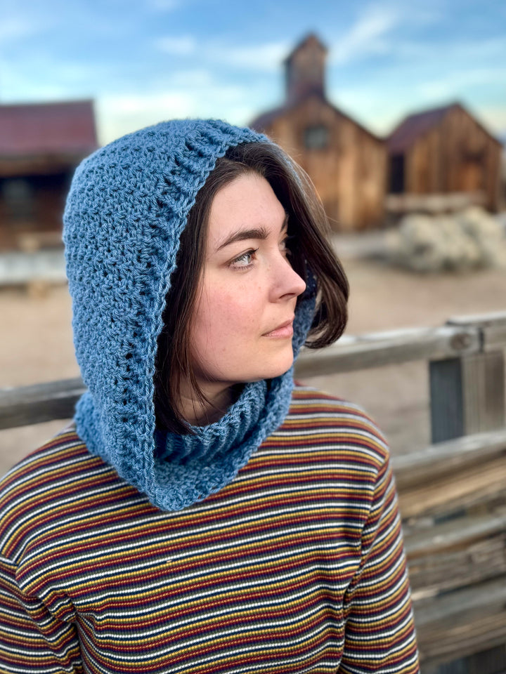 Need a little extra warmth for chilly days? Yarn Citizen's Quiet Morning Hood is the answer! This crocheted accessory will keep your neck, ears, and warm, and the hood can be worn up or down as needed.