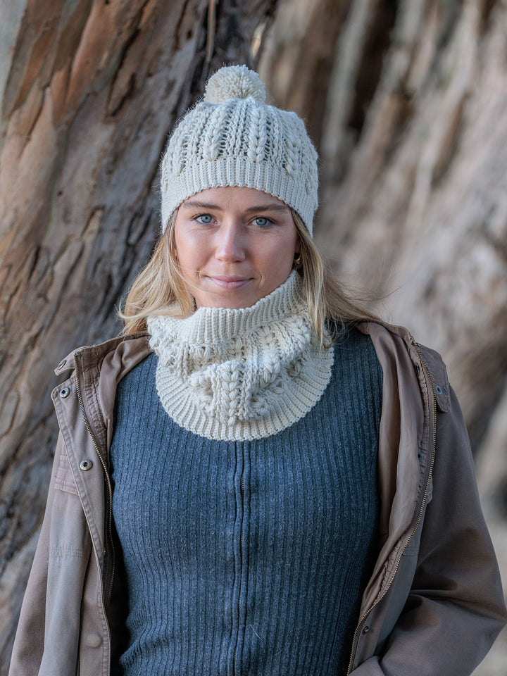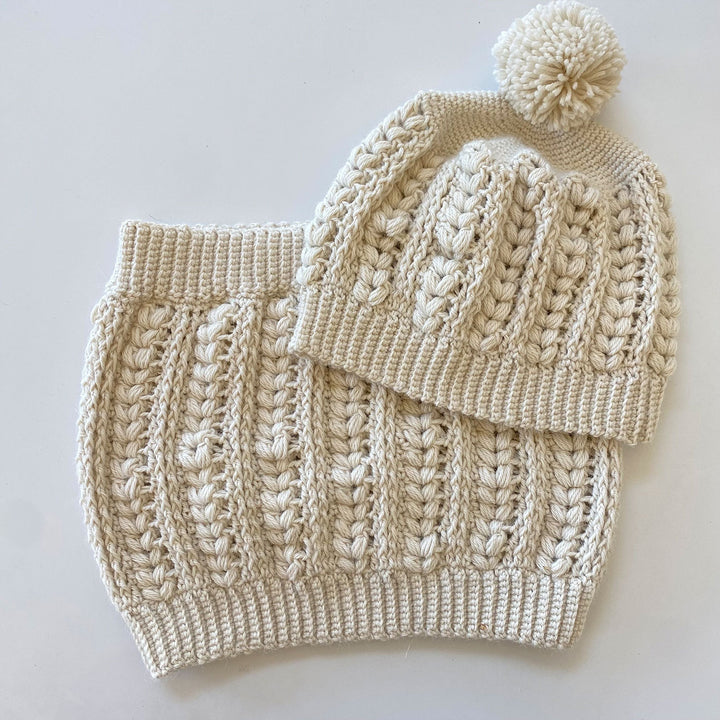 Stay cozy and stylish with the Penguin Tracks Hat & Cowl Set! This accessory set is crocheted in Yarn Citizen Harmony DK, a soft and sustainable blend of wool and alpaca, and features a fun stitch pattern reminiscent of a penguin's footprints.